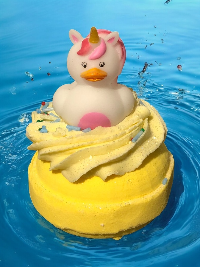 🐤 The Duck: Sitting proudly on top is a rubber ducky bathtub toy – a fun keepsake for kids and kids-at-heart! Ducks vary in style depending on availability, making each bath bomb delightfully unique.