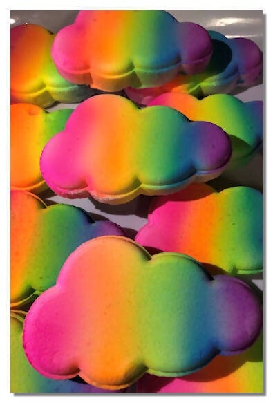 Introducing our Handmade Rainbow Bath Bombs! Watch in awe as vibrant rainbow colors stream out of these fizzy wonders, creating a mesmerizing display in your bath water. Made with high-quality ingredients and air brushed colors, our bath bombs are perfect for a soothing and sensory experience.